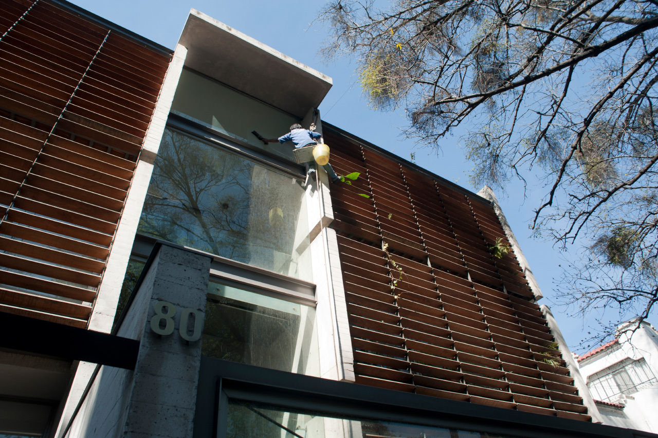 En el corazón de Polanco entre la avenida presidente Masaryk y el parque Lincoln se encuentra Aristoteles 80. Este proyecto residencial de alto nivel consta de 6 departamentos distribuidos en 4 pisos y un sótano para estacionamiento. Cada nivel se eficientó para aprovechar su máxima área habitable y rentabl, disponiendo simétricamente 2 unidades por nivel con circulación vertical centralizada. La fachada del edificio guarda las áreas sociales de los departamentos por lo cual se añadió una segunda piel de madera en forma de parteluces que dan privacidad y filtran la luz al interior para evitar el uso de cortinas y resaltar el carácter estético del edificio.