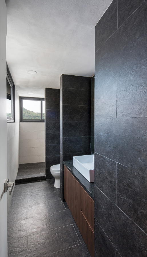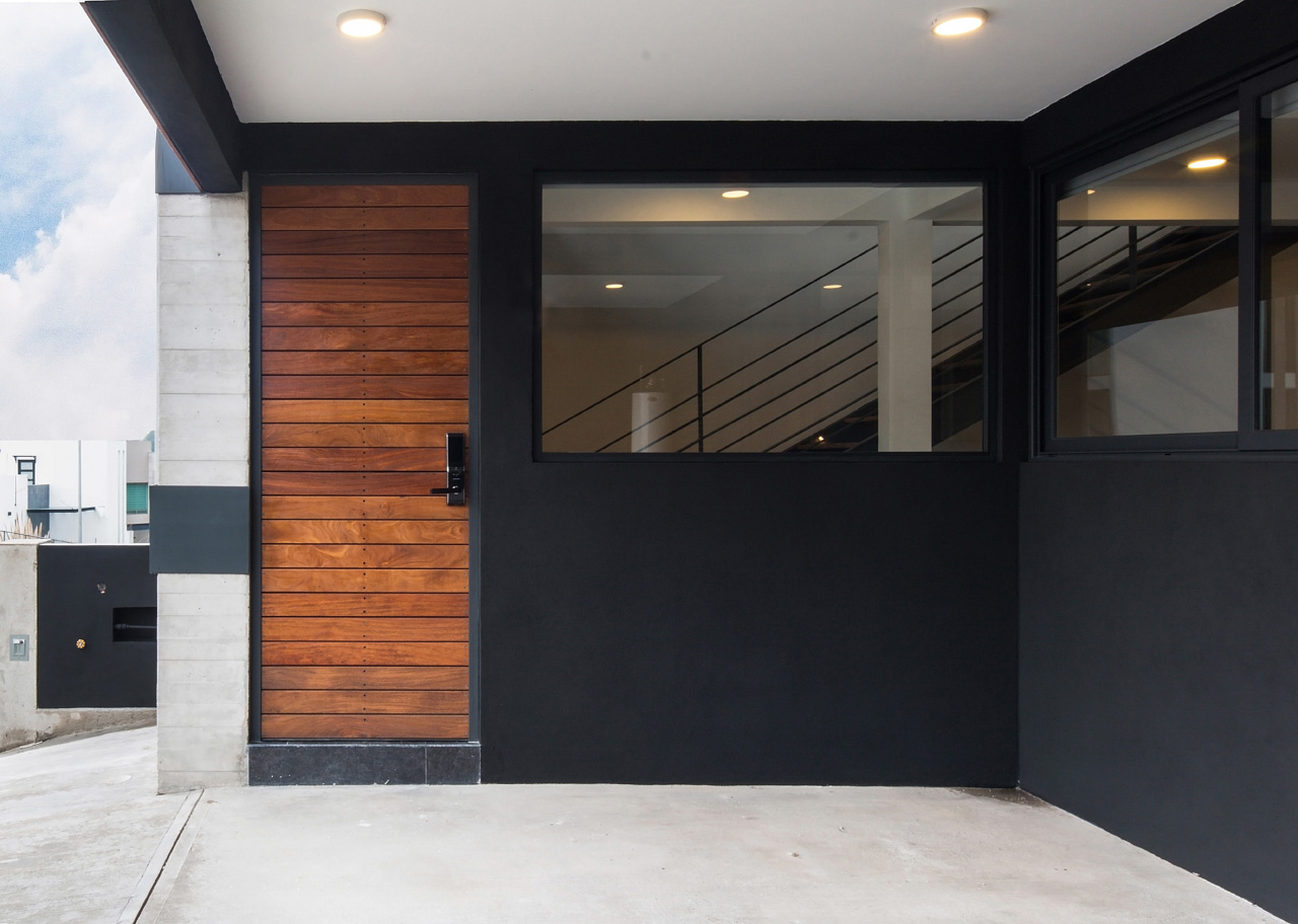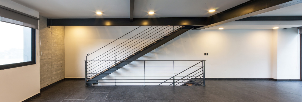 Para obtener la mayor libertad y flexibilidad en el trazo de las plantas se utilizó estructura de acero para iibrar los claros completos entre colindancias laterales lo cual motivó a que la envolvente de concreto aparente se combinara con el acero expuesto y de esta forma darle una estética pura y sobria al volumen total de la casa.