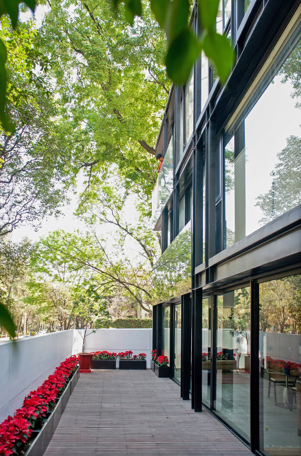 Para lograr ensamblar los programas de cada departamento que incluían dobles alturas y terrazas se utilizó una viga Vierendeel en fachada la cual nos permitió crear plantas libres en cada nivel; se desplantaron los muros a placer y se generaron los huecos internos para las solicitadas dobles alturas. La estructura expuesta da uniformidad y carácter a este edificio que disfruta de excelentes vistas al Parque Lincoln de Polanco la colonia con mayor plusvalía en México.