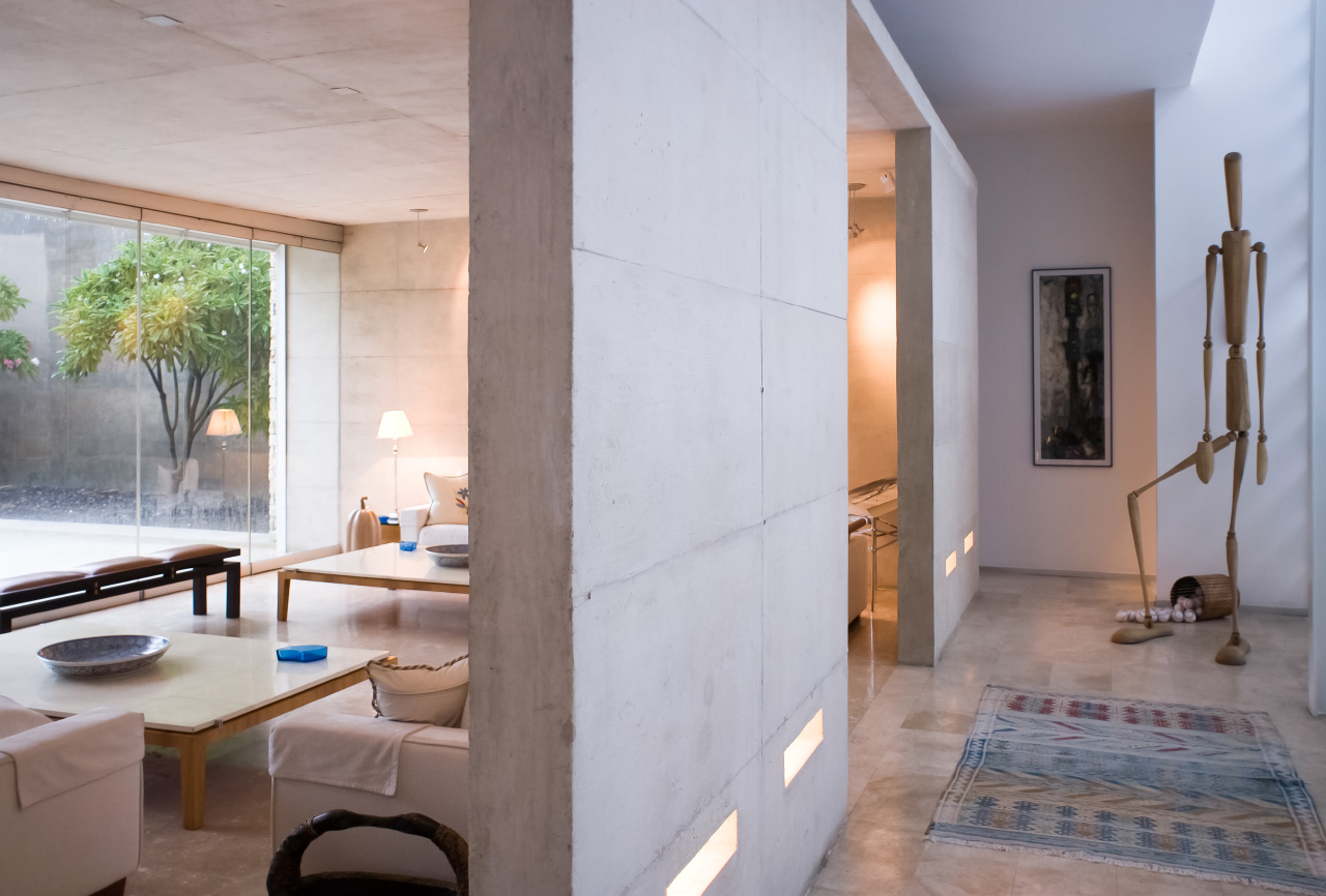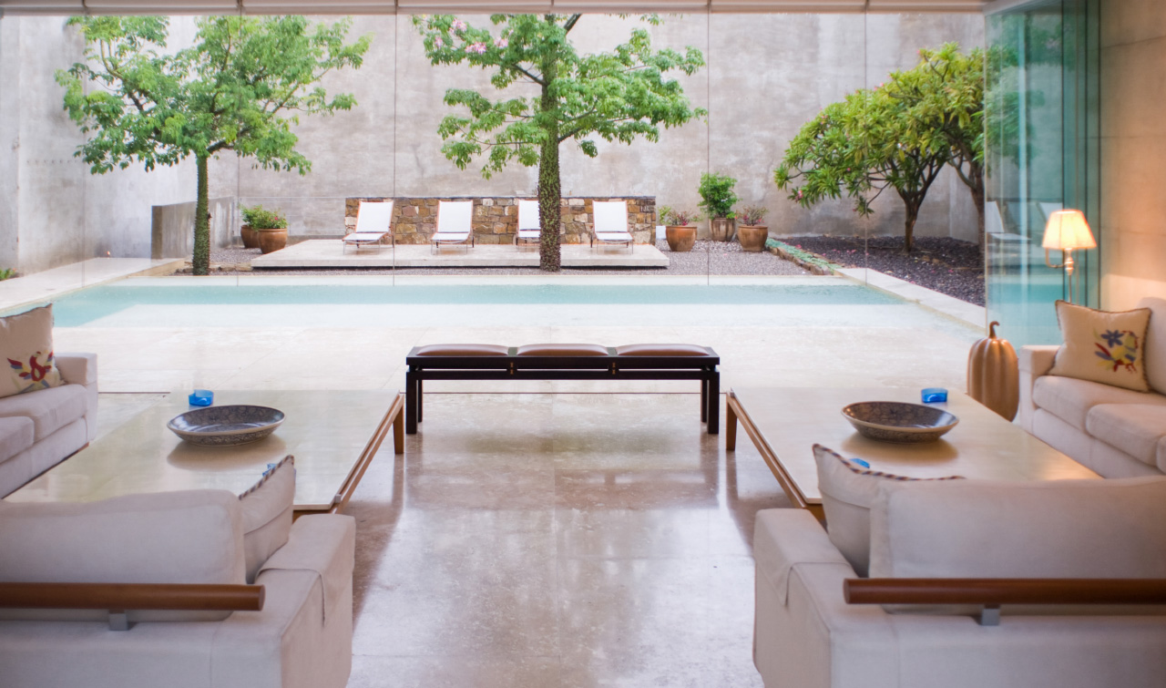 Esta casa de descanso ubicada en el centro de la ciudad de Oaxaca fue diseñada como un pequeño hotel con la finalidad de albergar al propietario junto con sus amigos algunas veces al año, cuenta con cuatro habitaciones, salón de juego y un gimnasio pero lo interesante se encuentra en las áreas exteriores ya que tiene un terreno de 1,600m2 aproximadamente y decidimos sembrar la casa al centro para generar un jardín con carril de nado junto a la sala, un patio interior y un segundo jardín de cactáceas con plataformas para eventos, con lo que se logran referencias visuales y puntos de interés desde cualquier habitación o zona habitable de la casa.