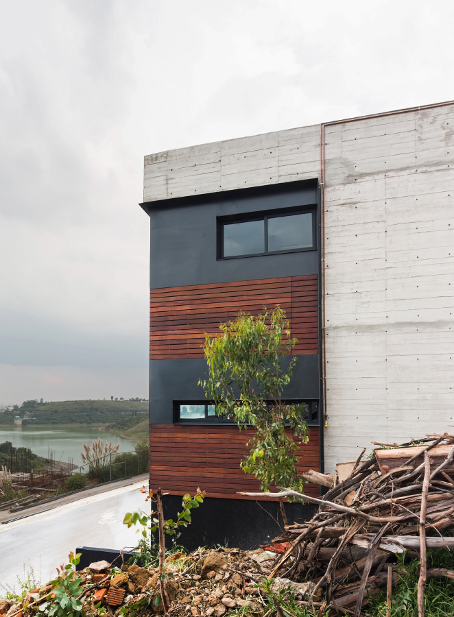 Distribuida en 3 niveles, el nivel de calle recibe e invita al intermedio donde la sala comedor y cocina se integran con el jardín. Así las habitaciones quedan resueltas en el último nivel con vista al jardín y la principal al frente con la Presa Madín rematando en una azotea planteada como roof garden aprovechando la privilegiada ubicación en primera línea del residencial Aqua en Atizapan, Estado de México.