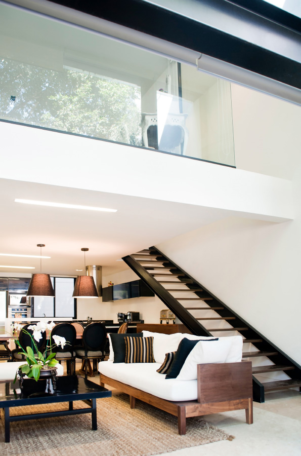 Al reto de resolver los diversos programas se le sumaron las restricciones del uso de suelo que exigían un remetimiento en fachada para poder dar uso al 4to nivel, en el cual la geometría de la cubierta a 30 grados -parcialmente acristalada- solucionó efectivamente la normativa y añadió una espectacular entrada de luz natural a los departamentos.
